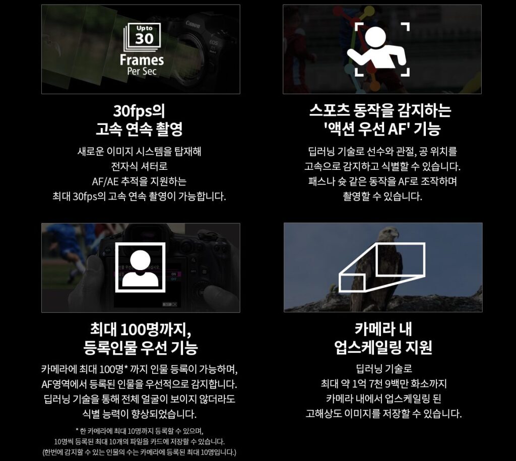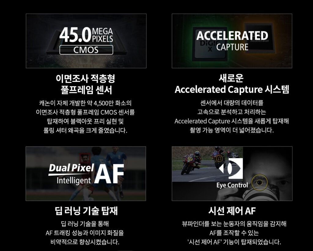 결합해 만든, 캐논 EOS 역사상 최고의 이미징 시스템이라고 설명하고 있네요.
