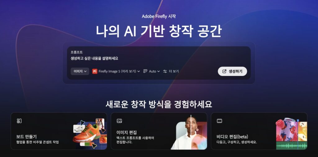 Adobe의 AI 엔진인 Firefly를 기반으로 이미지 생성을 지원하며,