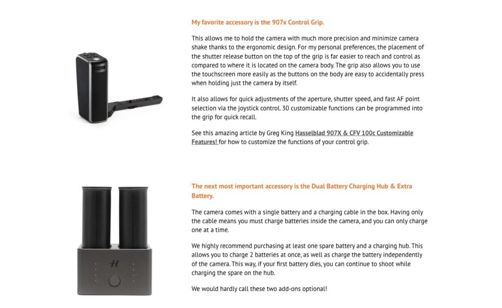 Hasselblad의 907X는 모듈형 디자인 덕분에 다양한 액세서리 및 모듈과 조합이 가능하여 촬영 스타일과 환경에 맞게 유연하게 구성할 수 있습니다. 주요 모듈 및 액세서리는 다음과 같습니다.